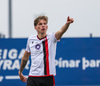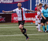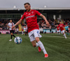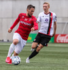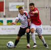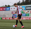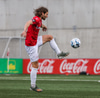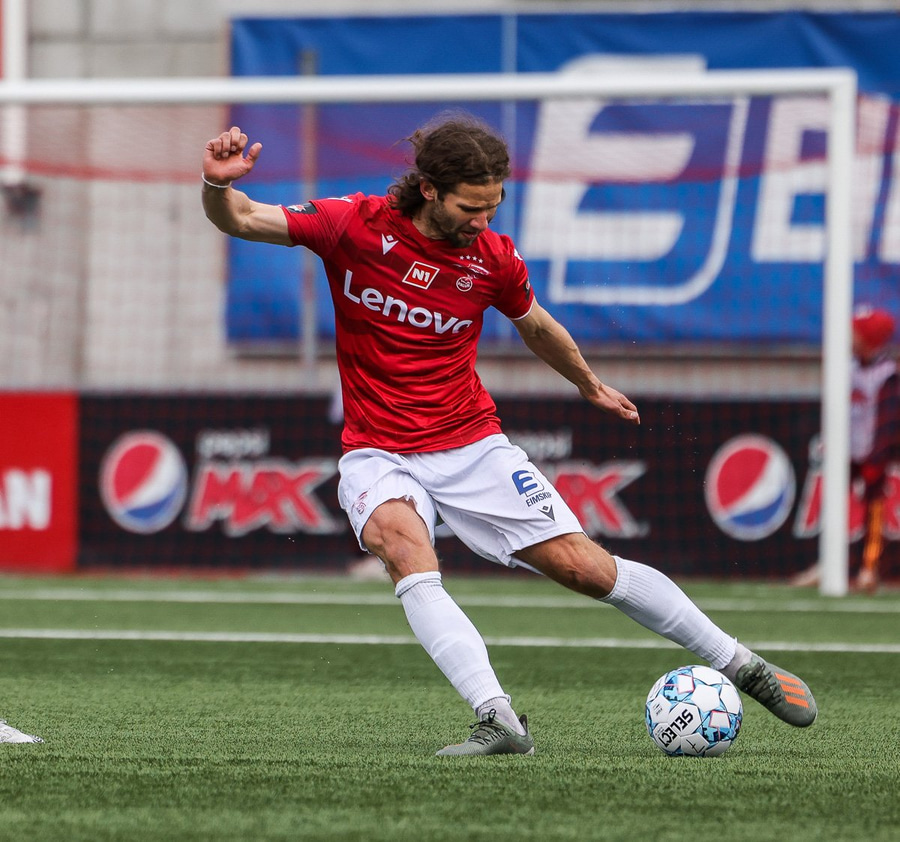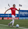 Fær boltann inn á teig Valsmanna og kemur sér í skotfæri og lætur vaða en skotið slakt og beint á Hannes.