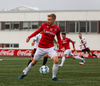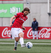 Fær boltann út til hægri við vítateigshornið og leikur inn á völlinn og lætur vaða með vinstri og boltinn rétt yfir markið.