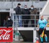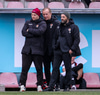 Leikmenn liðana halda til búningherbegja og gera sig klár fyrir upphafsflautið. Áhorfendur eru farnir að týnast inn á völlin.