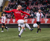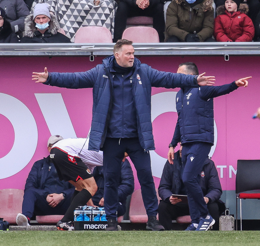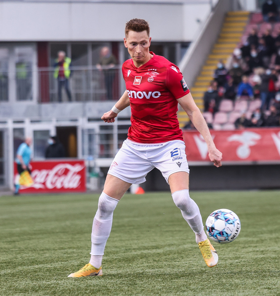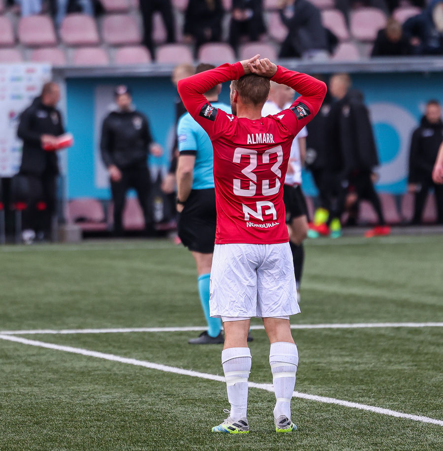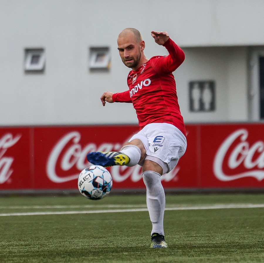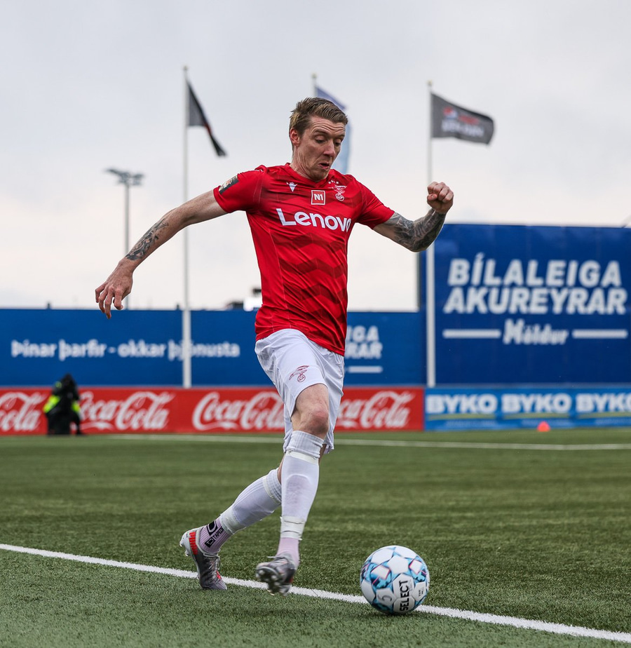 Rasmus lyftir boltanum inn á Patta Pedersen sem sleppur einn á móti Þórð en Patti Pedersen flaggaður rangstæður.