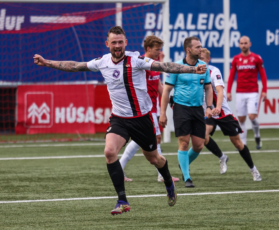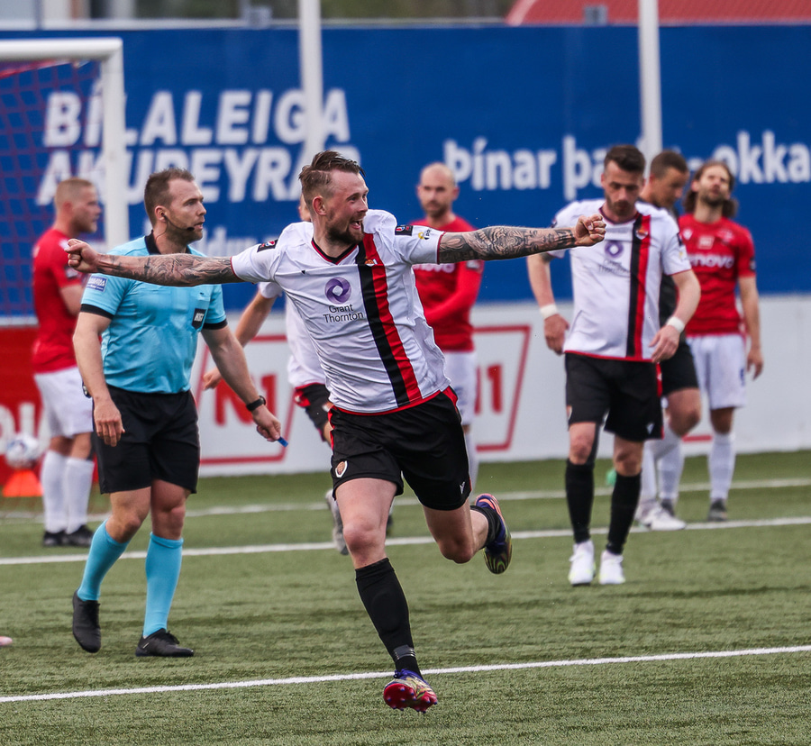 Kári Árnason finnur Sölva Geir sem kemur boltanum á Karl Friðleifur sem kemur boltanum fyrir og boltinn dettur fyrir Loga Tómas sem nær skoti á markið en Hannes Þór ver.