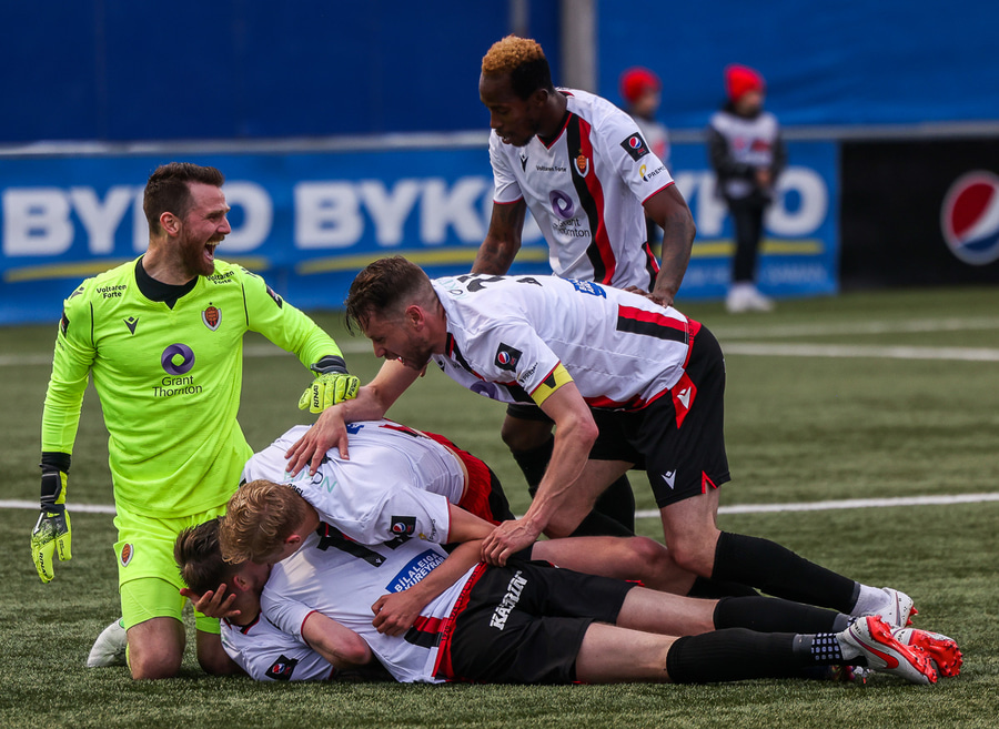 Uppbótartíminn á Origo er að lágmarki fimm mínútur, nægur tími fyrir eitt mark í viðbót!