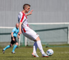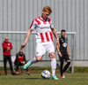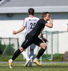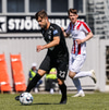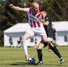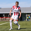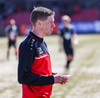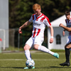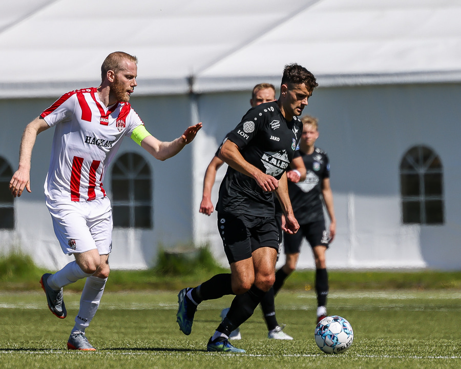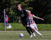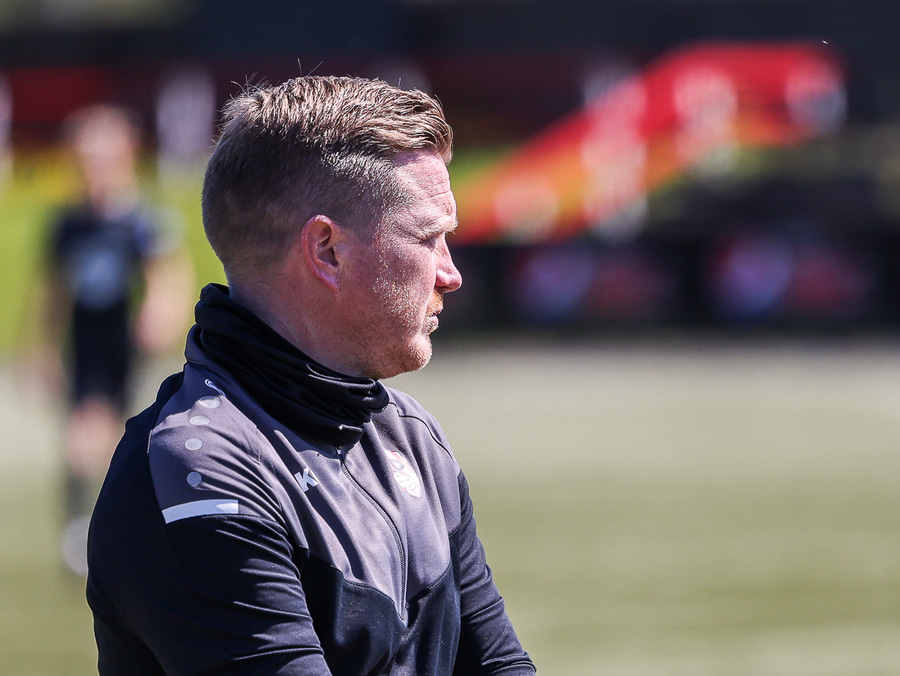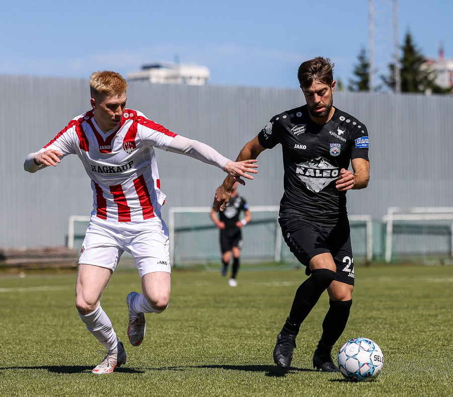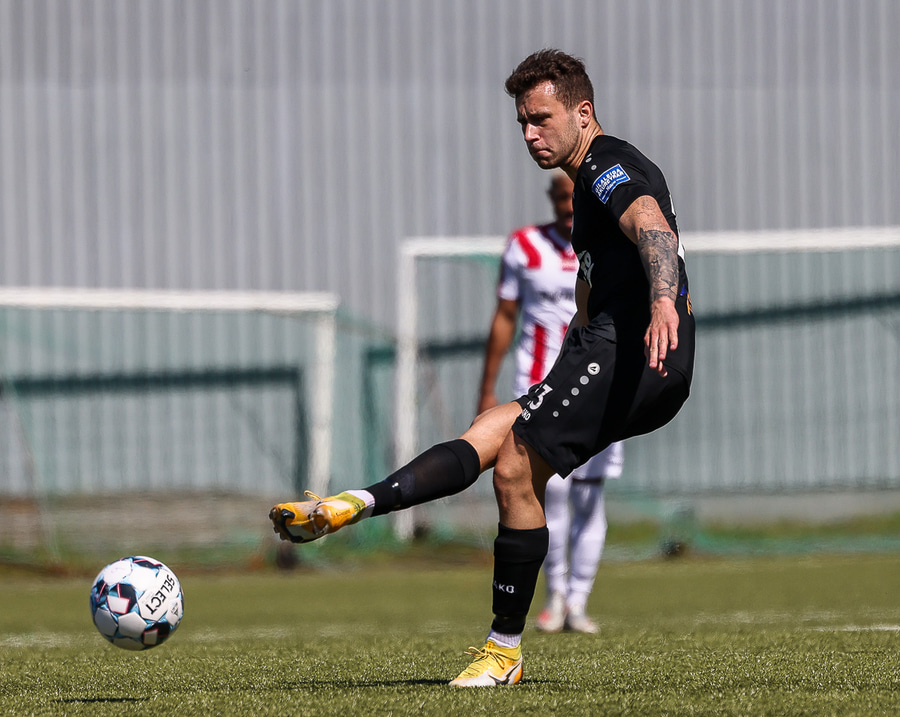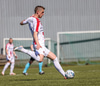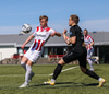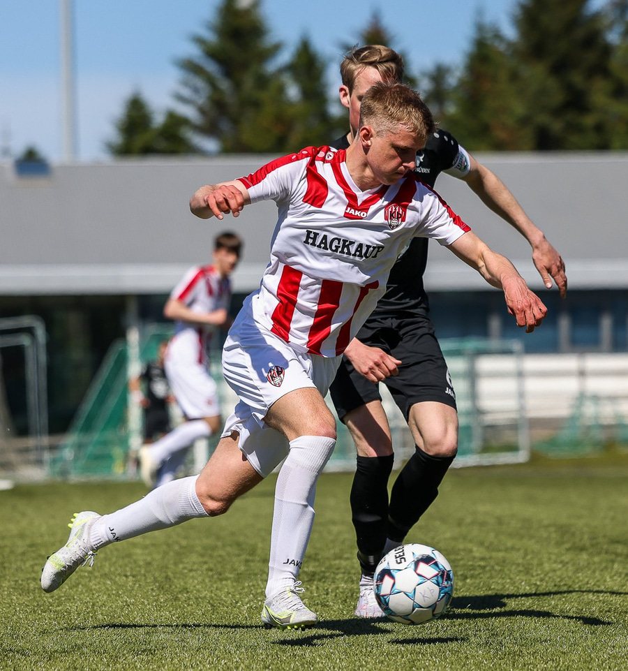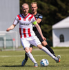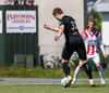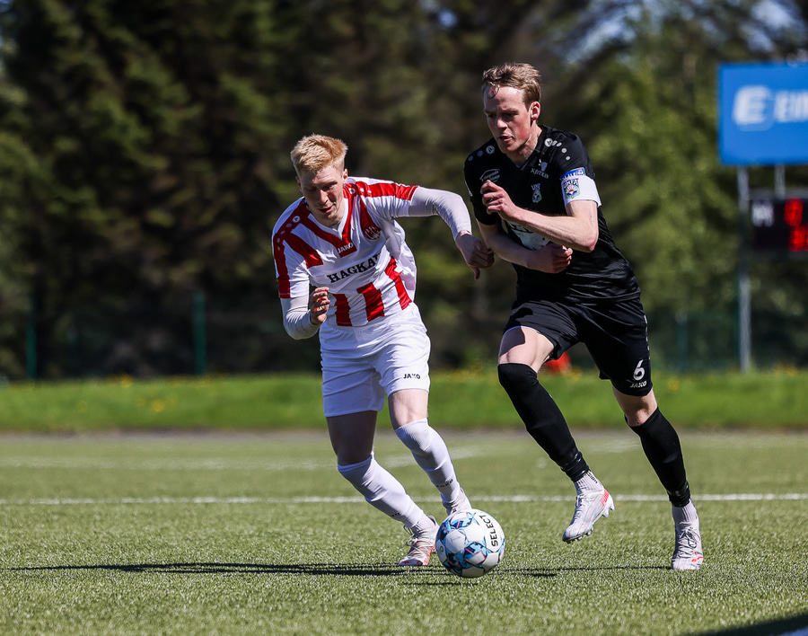 Kraftur í Kára Stein! brunar upp völlinn hægra megin, endar á skoti frá Valgeiri sem Franko ver