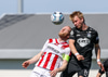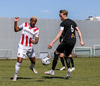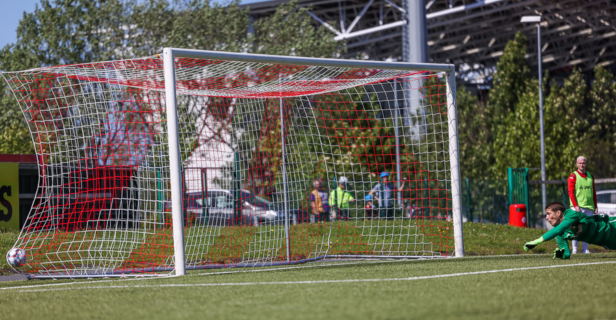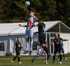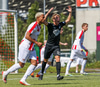 Há sending inn í teig, Arnór skallar hann yfir Franko í markinu, vá hvað þetta var vel gert