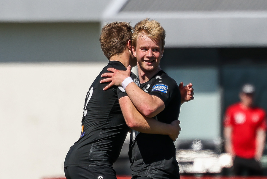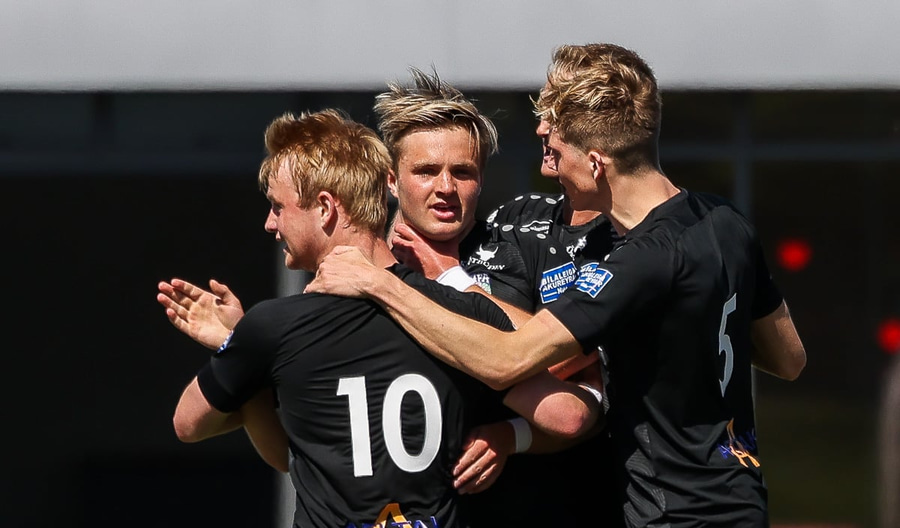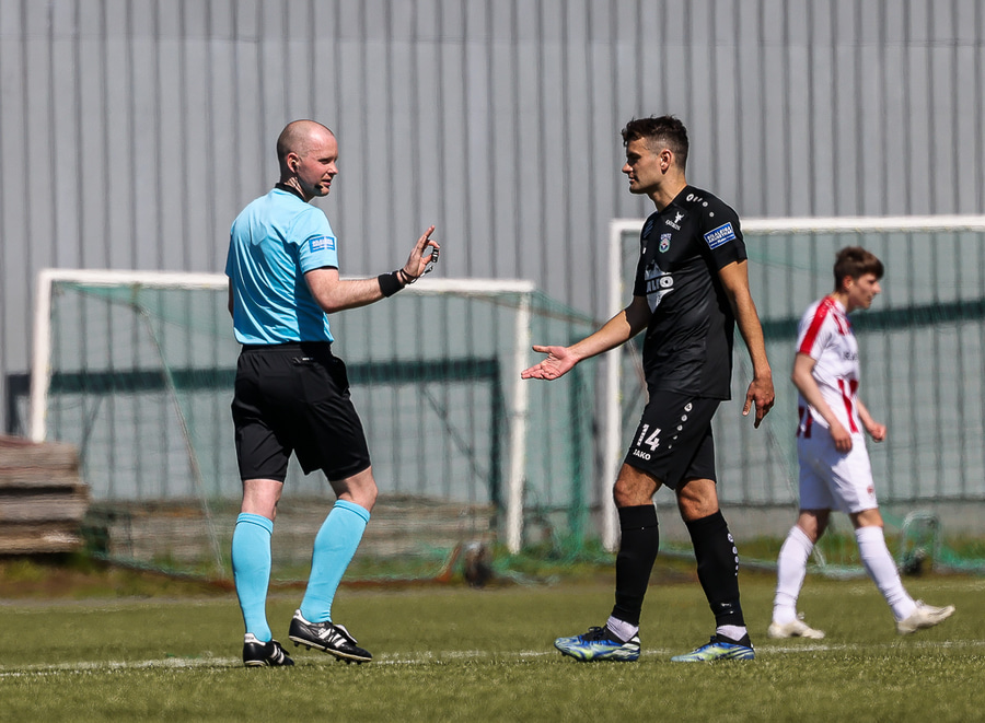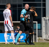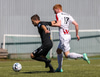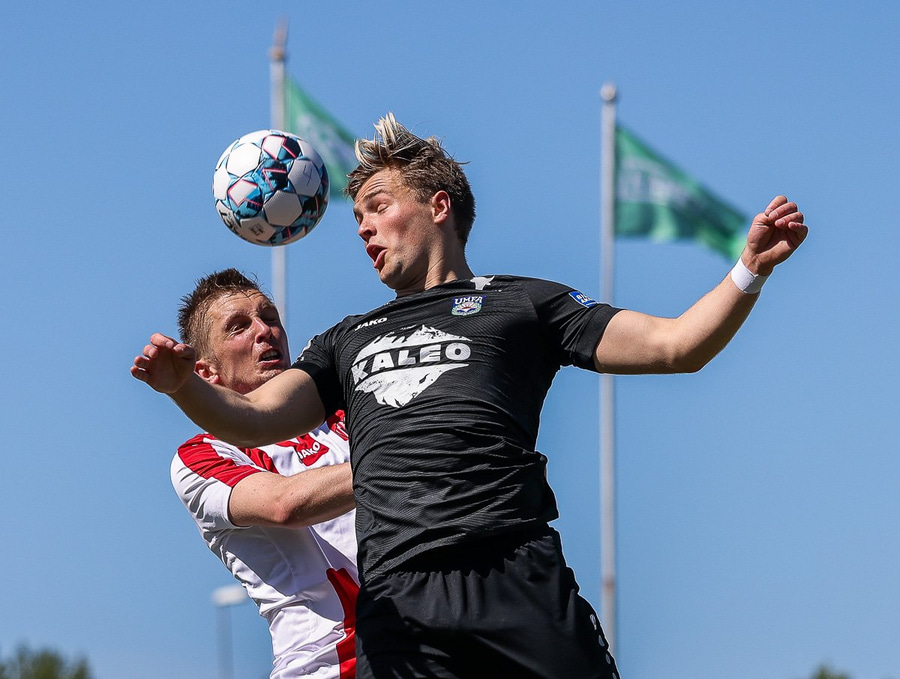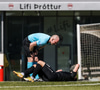 Hafþór og Kári Steinn lenda í samstuði á miðjum vellinum. Kári þarf aðhlynningu utan vallar