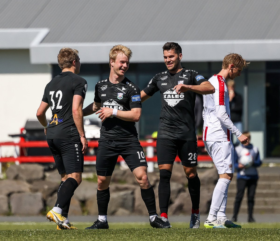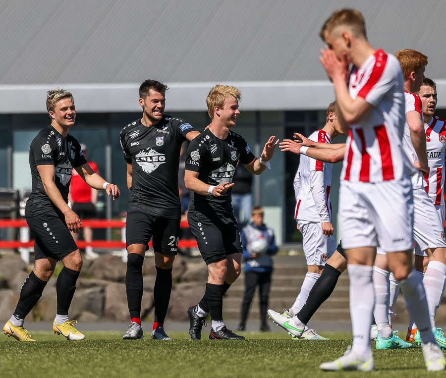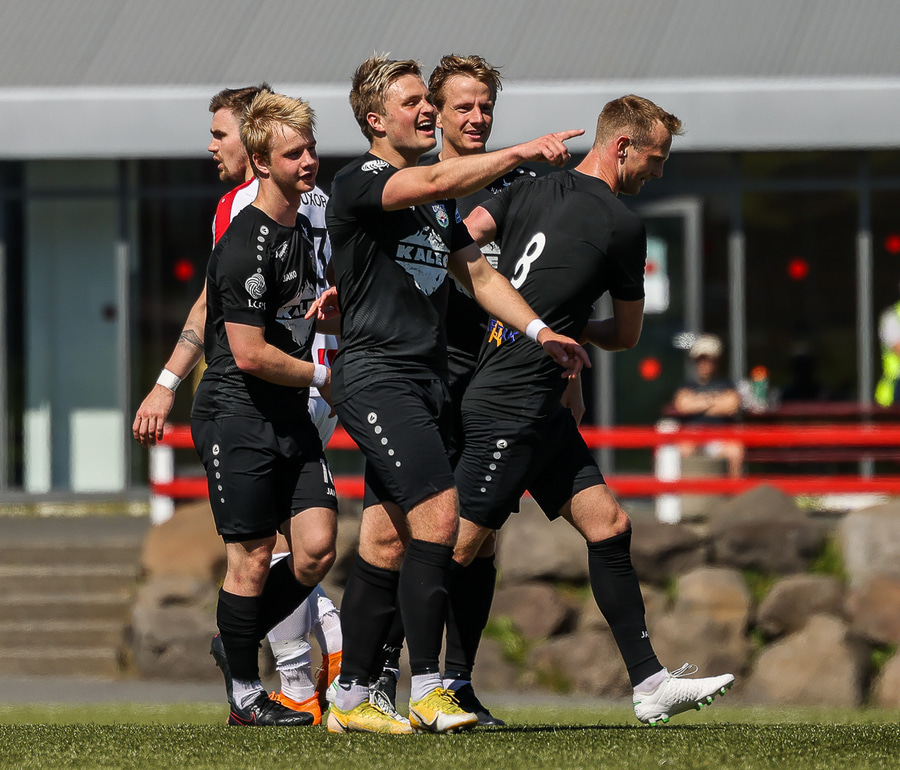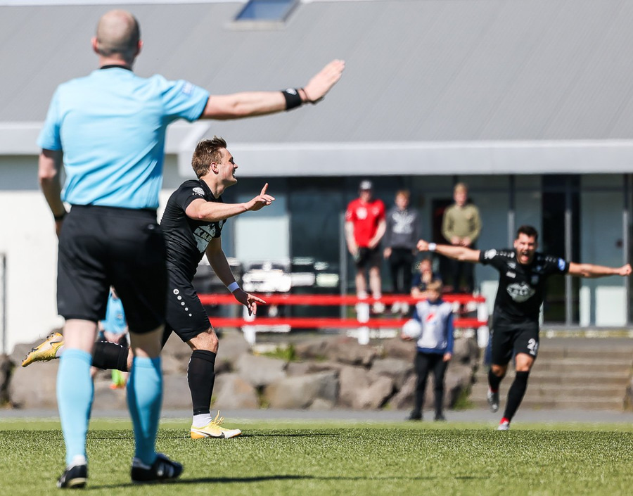 Flott spil hjá heimamönnum, Lárus gerði vel, góð sending fyrir markið og Kairo gat ekki annað en skorað í autt markið. Þetta er allt opið