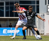 Hápressan hjá Þrótti heldur áfram að gera gestunum erfitt fyrir og Þróttarar vinna boltann hátt á vellinum