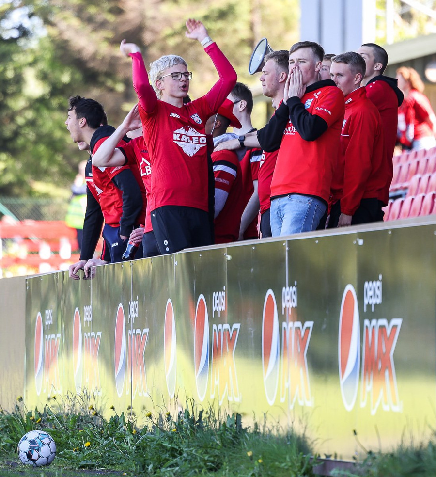 COVID er búið syngur stuðningsmannasveit Aftureldingar, held að það geti allir fagnað því hérna á vellinum