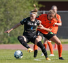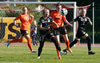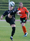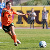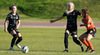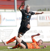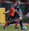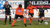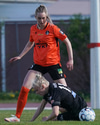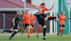 Shannon vinnur boltann auðveldlega á miðjunni, á síðan skot rétt fyrir utan teig framhjá markinu.