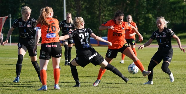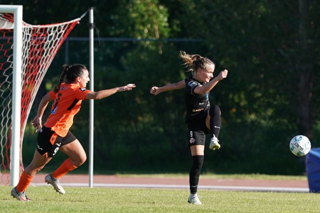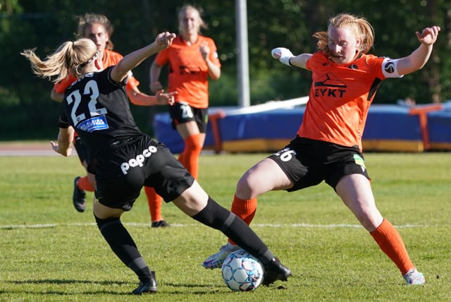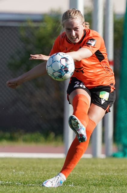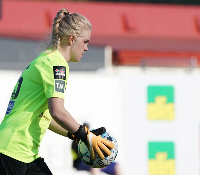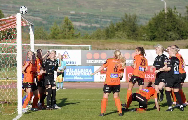 Önnur hornspyrna frá Þór/KA. Arna þarf að teygja sig í boltann og rétt strýkur boltann með enninu.