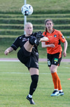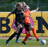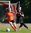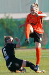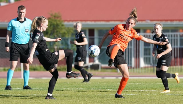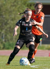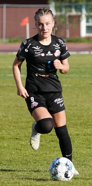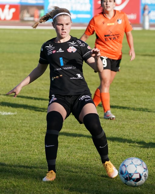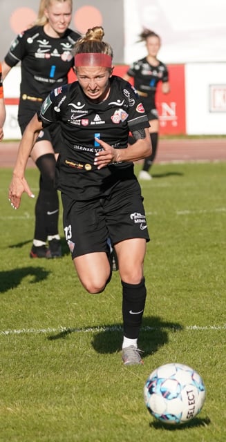 María Gros kemst í góða fyrirgjafastöðu en boltinn fer ekki framhjá fyrsta varnarmanni.