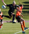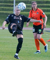 Karen María með frábæran sprett, leikur á tvo varnarmennn og sendir síðan á Maríu sem á slakt skot.