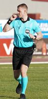 Elías dómari flautar til leikhlés. Það er ekki mikið, jah ekkert eginlega um færin hér..