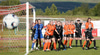 Liðin eru að ganga inn á völlinn. Sigurvegarar TM mótsins 5.flokkur kvenna hjá KA standa heiðursvörð.