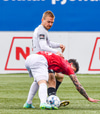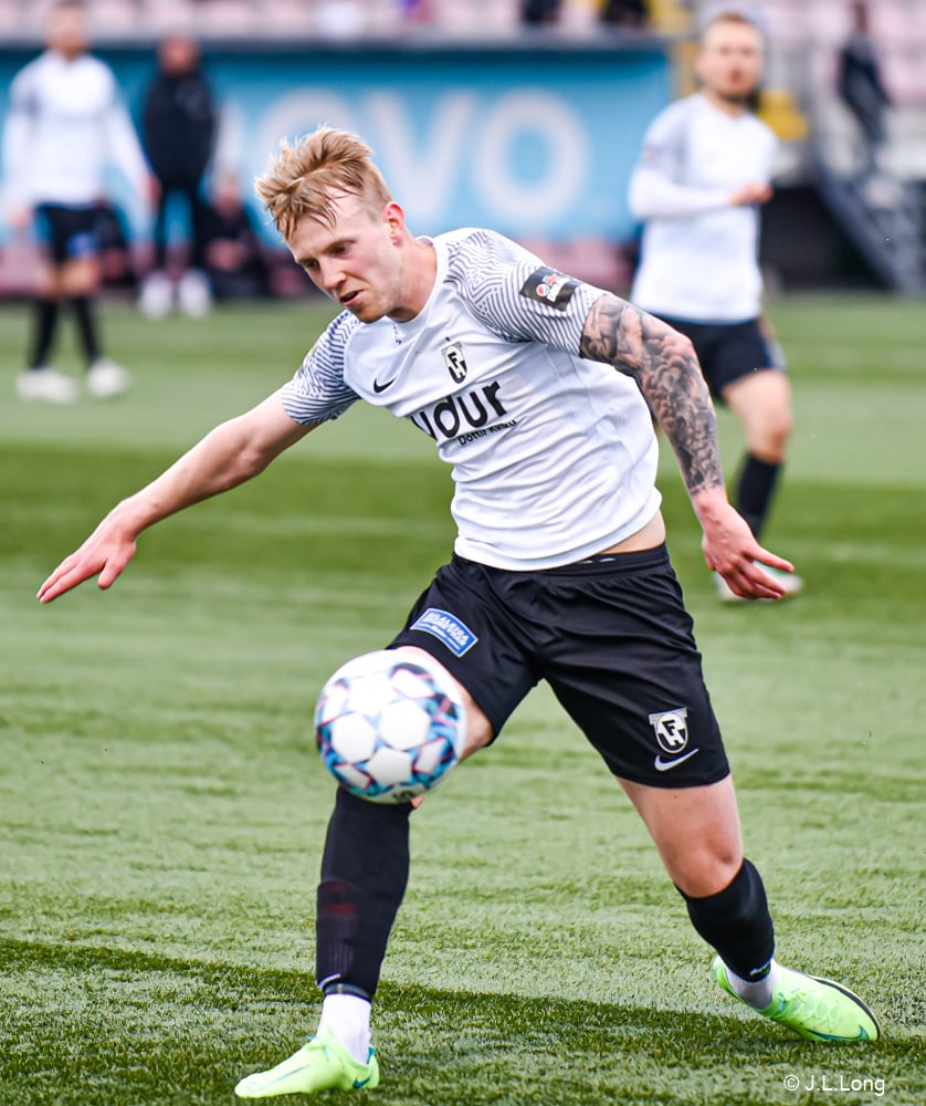 Jónatan Ingi og Birkir í kapphlaupi, Birkir brýtur af sér í baráttunni og fær gult.