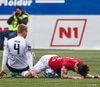 Sigurður Egill með fyrirgjöf sem Gunnar handsamar. Sótt á báða bóga í þessum leik. Hver verður fyrstur til að reka smiðshöggið?