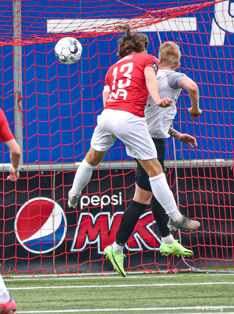 Rasmus á svo skalla eftir hornið en töluvert framhjá.