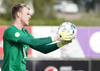 Benedikt tekur boltann á lofti, hittir boltann vel en tiltölulega beint á Daða sem ver vel.