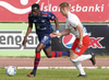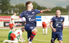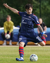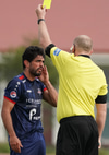 Sparkar boltanum í burtu eftir að það var dæmd aukaspyrna