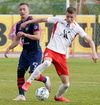 Vladimir inn í D boganum rennir boltanum á Luke sem á gott skot sem Daði ver vel í horn.