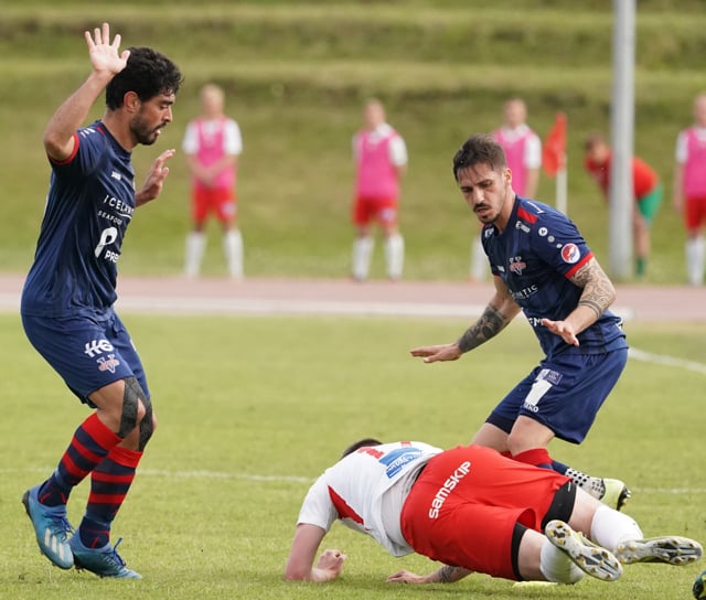 Þetta voru Petar hjá Þór og Sergine Fall hjá Vestra. Þeir eru báðir komnir á fætur og komnir inná aftur.
