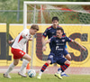 Benyu leikur á varnarmenn Þórs, sendir svo boltann meðfram jörðinni fyrir á Vladimir sem á skot vel yfir.
