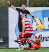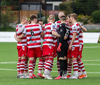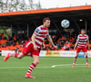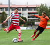 Hornspyrnan tekin stutt og svo kemur fyrirgjöf sem ratar á Ásgeir á fjærstönginni en tilraun Ásgeirs laus og Arnar Freyr grípur.