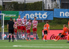 Hornspyrnan tekin stutt og kjölfarið fylgir alvöru stórsókn. Helgi Valur fyrst með skot í varnarmann og svo á Djair algjört þrumuskot af stuttu færi. Boltinn á nærstöngina og Arnar Freyr gerir vel að verja!