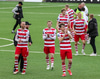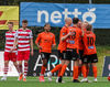 Fylkir spilar í appelsínugulum treyjum og svörtum stuttbuxum. HK spilar í hvítum og rauðum treyjum og rauðum stuttbuxum.