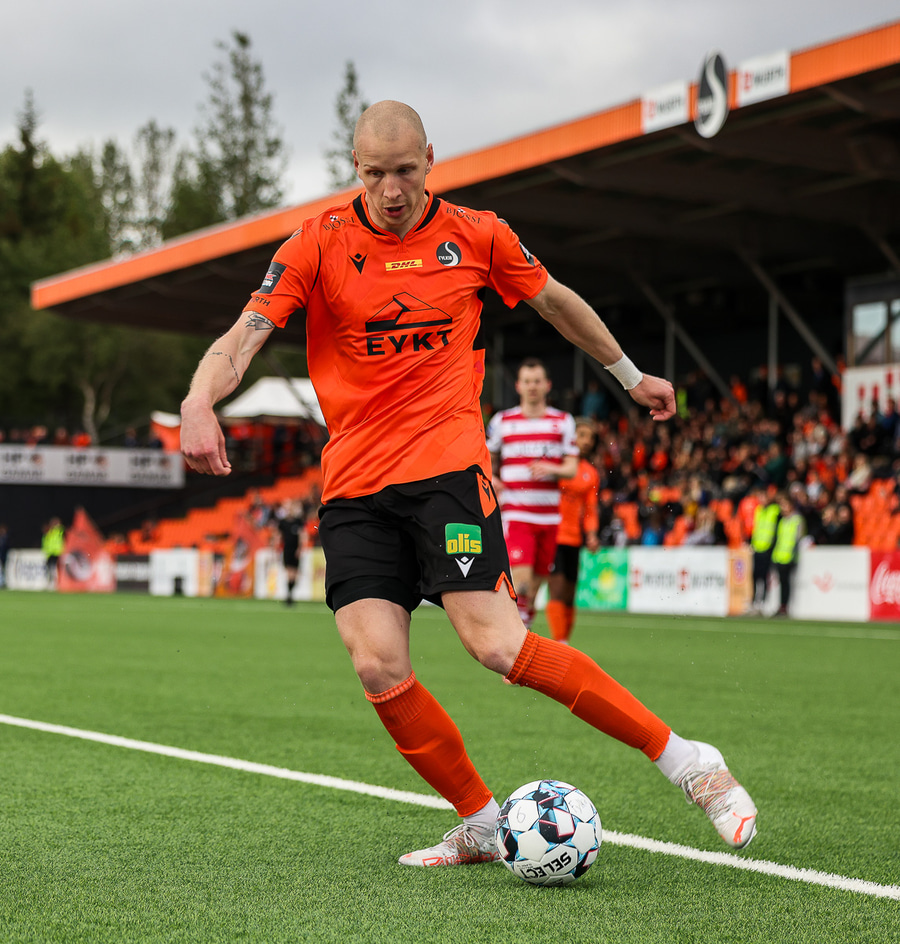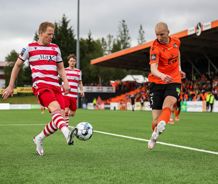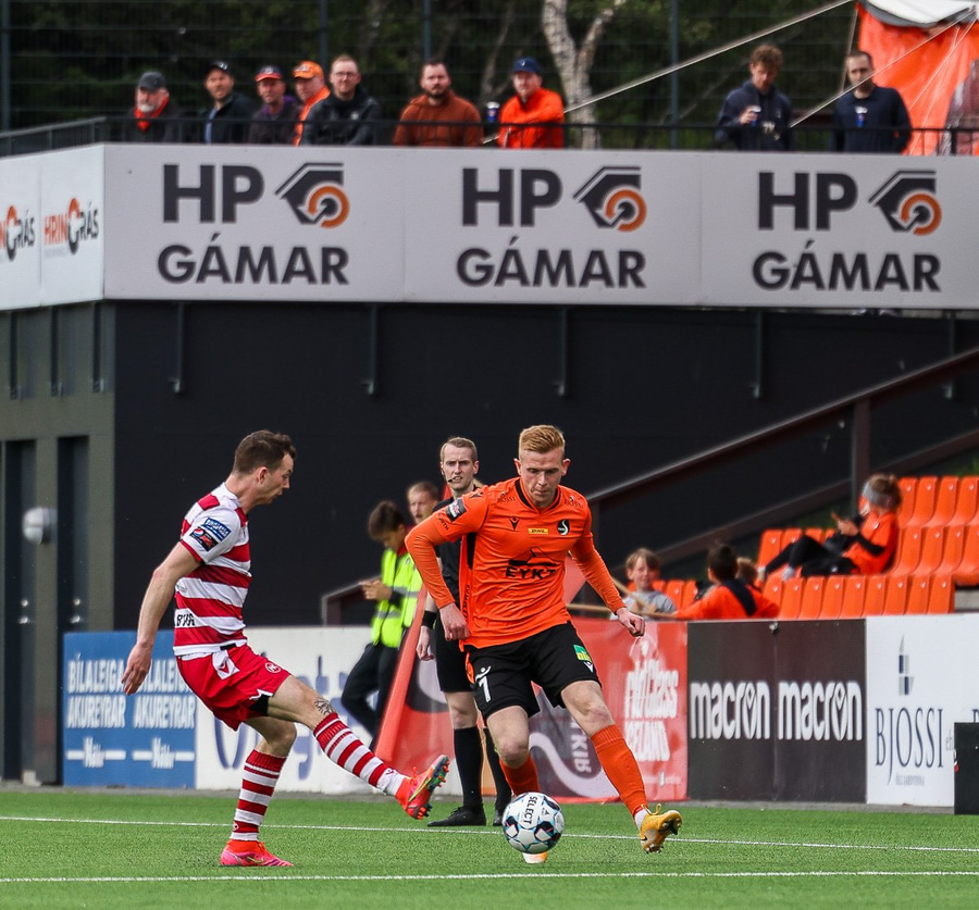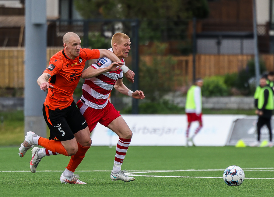 Dagur á fyrirgjöf sem Orri Hrafn kemst í en skotið frá Orra fer rétt framhjá.