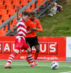 Arnþór með skot eftir samspil við Birni. Aron Snær ver boltann til hliðar þar sem Jón Arnar kemst í boltann. Jón Arnar á fyrirgjöf og finnur Arnþór inn á teignum. Arnþór með skalla sem Aron ver.