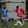 Elísa með fyrirgjöf sem er aðeins of há fyrir Ídu Marín sem nær ekki til boltans.