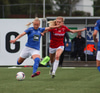 Hildigunnur fær boltann úti hægra meginn og keyrir áfram og fer framhjá Málfríði, reynir að koma boltanum út í teiginn en Sandra kemur út og nær til boltans.