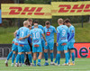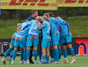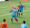 KA er í ljósbláum treyjum og sækir í átt að Árbæjarlaug í fyrri hálfleik.