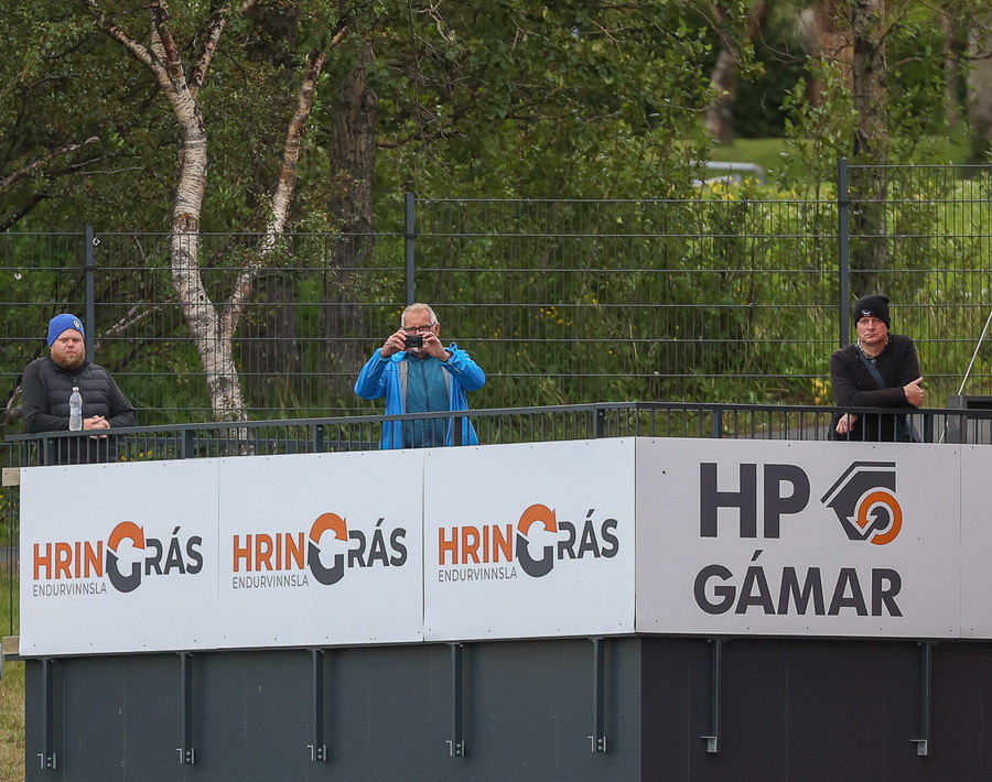Það er mikill hressleiki í Árbænum en fimmti og sjötti flokkur eru með grillveislu í aðdraganda leiksins. KA menn voru mættir snemma út að hita. Veðrið mætti vera betra, smá sunnanátt og skýjað.