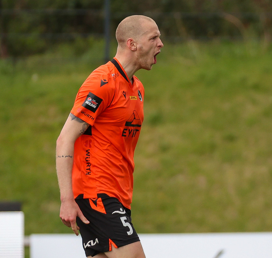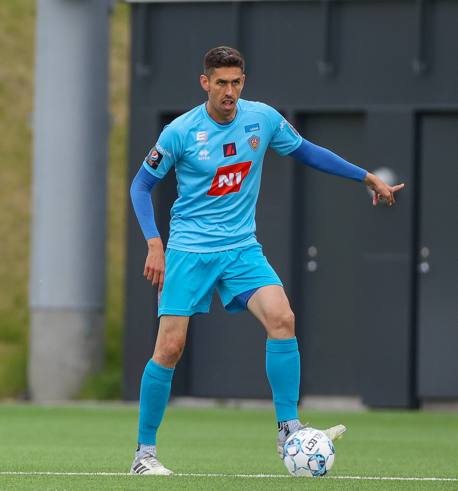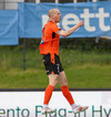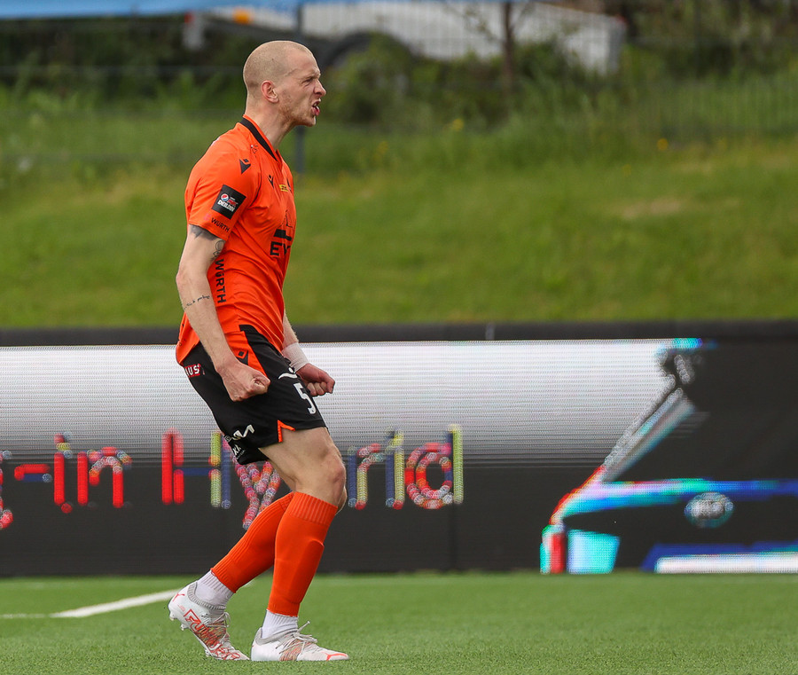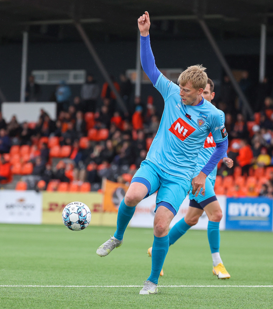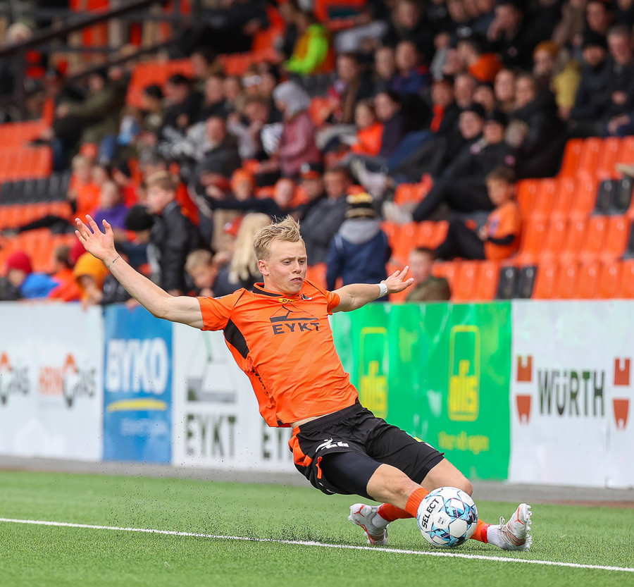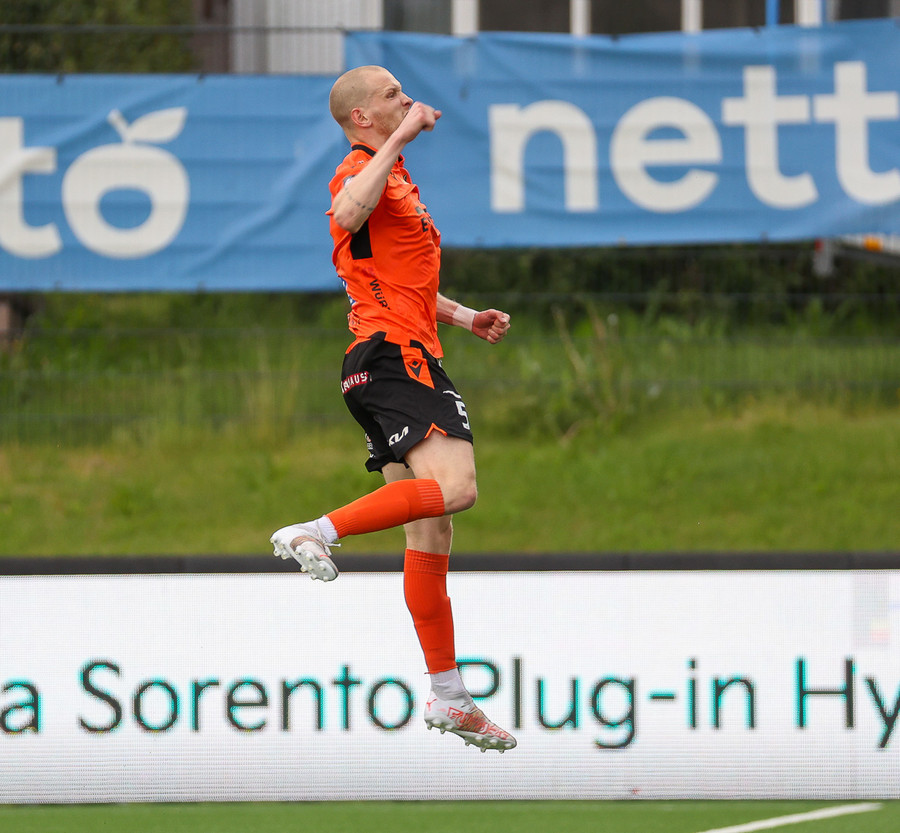 Miðvörðurinn sem brýtur ísinn í þessum leik við mikla kátínu stuðningsmanna Fylkis.