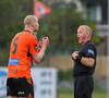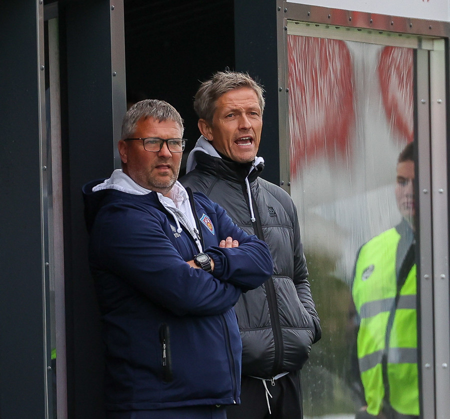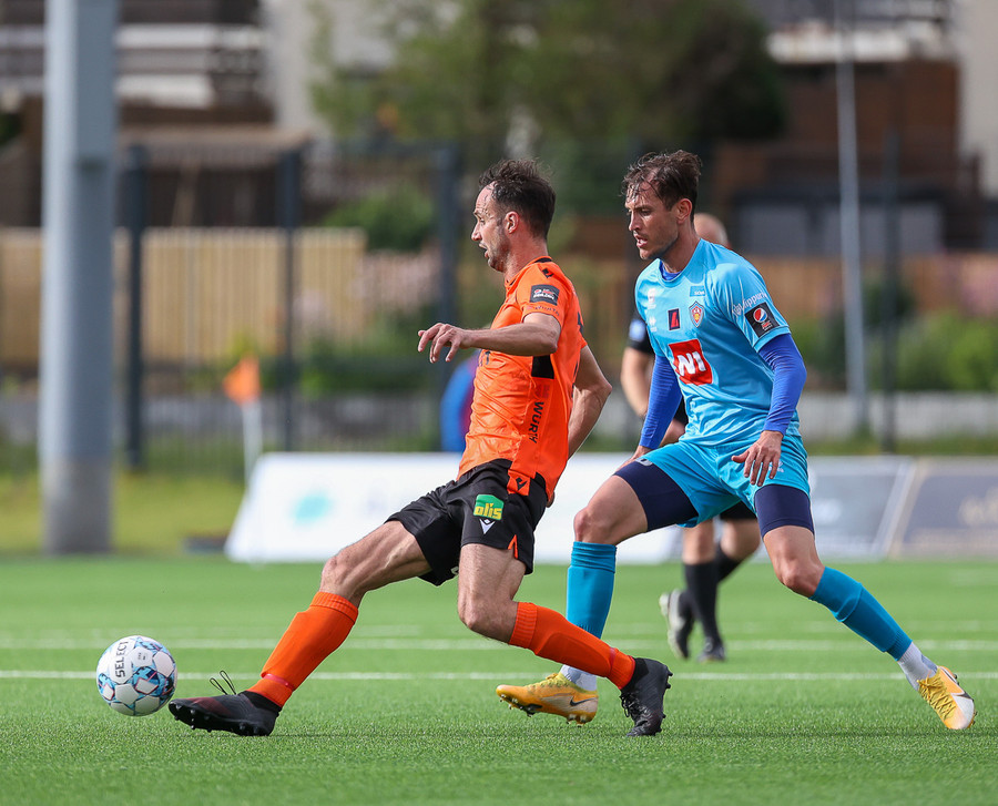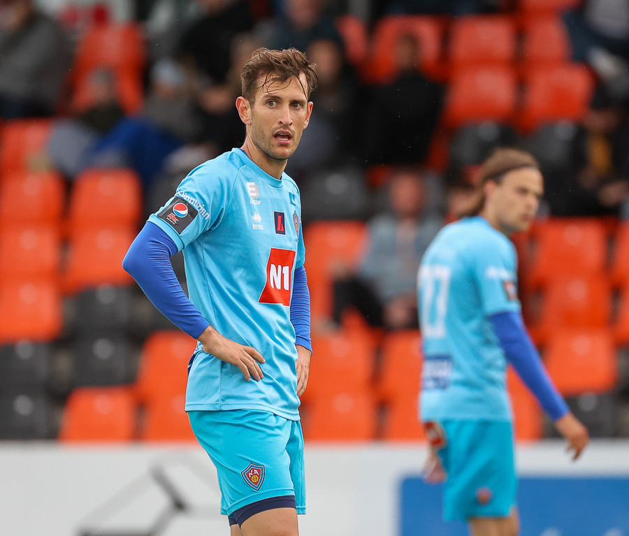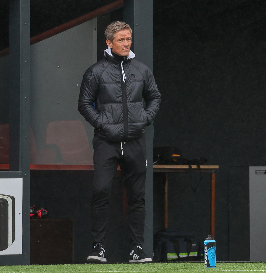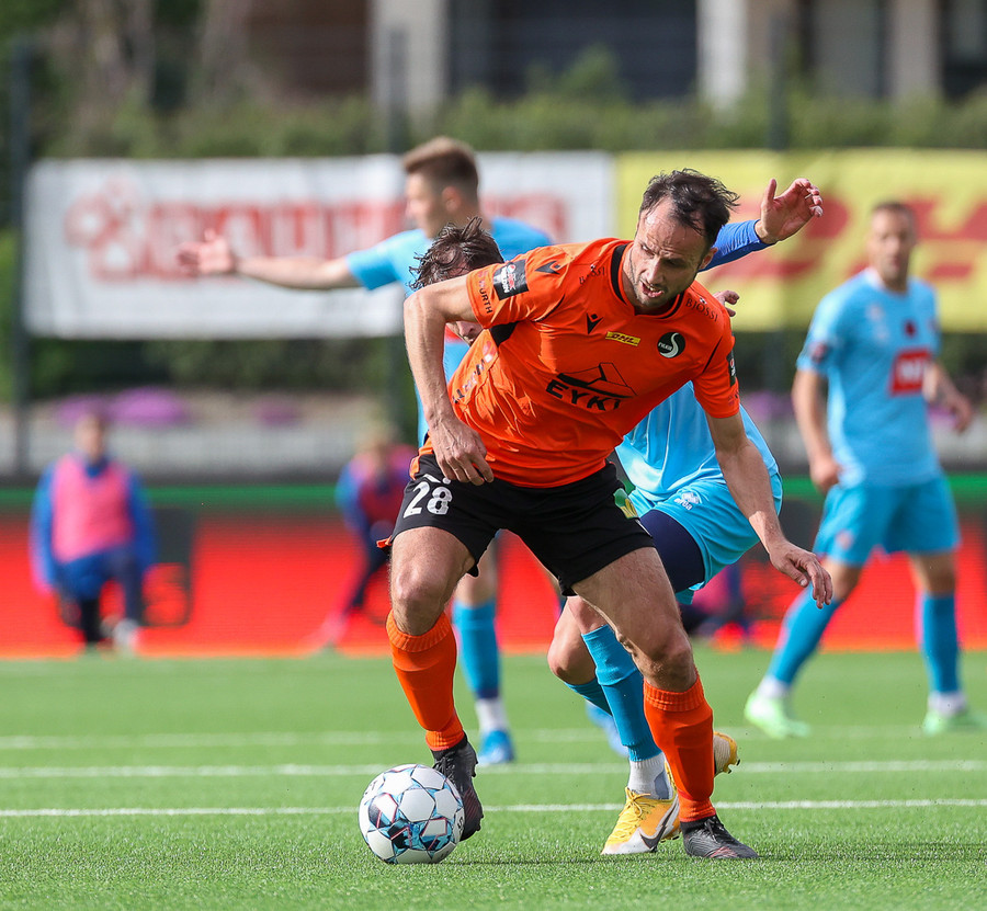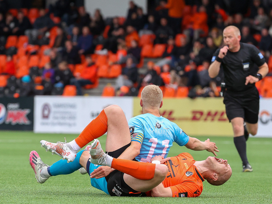 Arnór Gauti brýtur á Brebels rétt fyrir utan vítateiginn, til hliðar. Fær tiltal frá Erlendi. Hefði þetta gerst seinna í leiknum hefði gula spjaldið farið á loft.