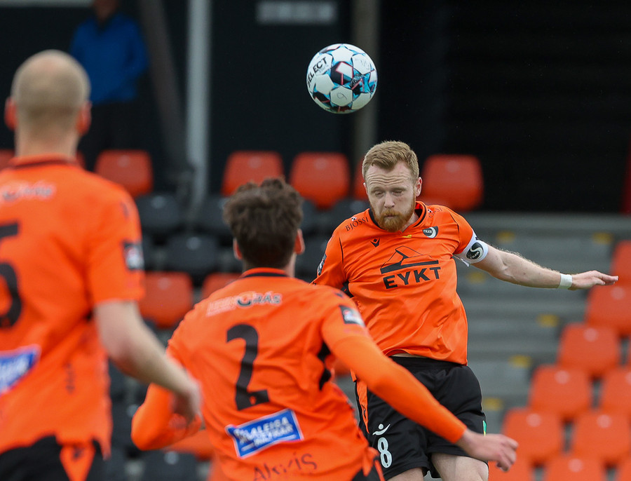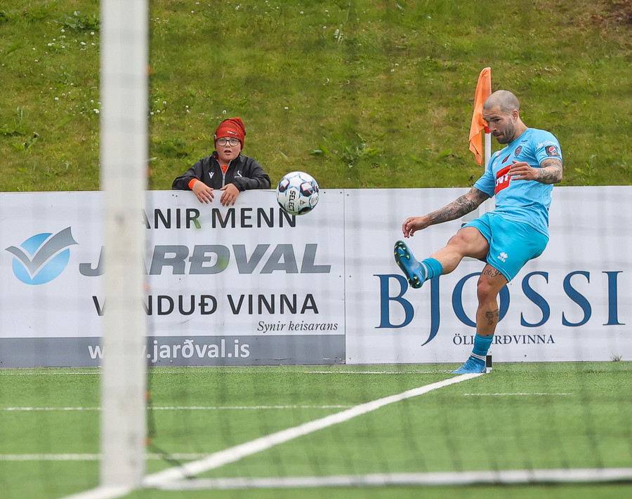 Hallgrímur Mar með hornspyrnu. Ásgeir skallar frá.