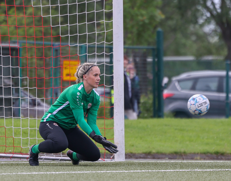 Katelin með klaufalegt útspark. Ísabella vinnur boltann og er fljót að koma með stórkostlega sendingu á Ólöfu. Sóknarmaðurinn gerir allt rétt og skorar verðskuldað mark. Frábær leikur hjá henni!