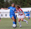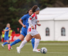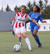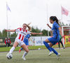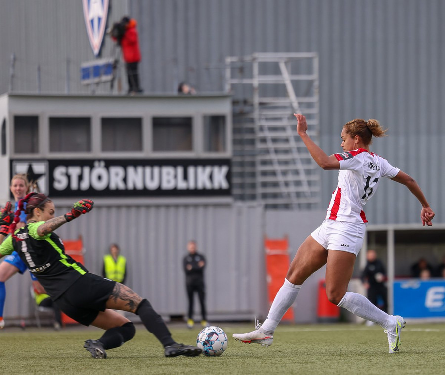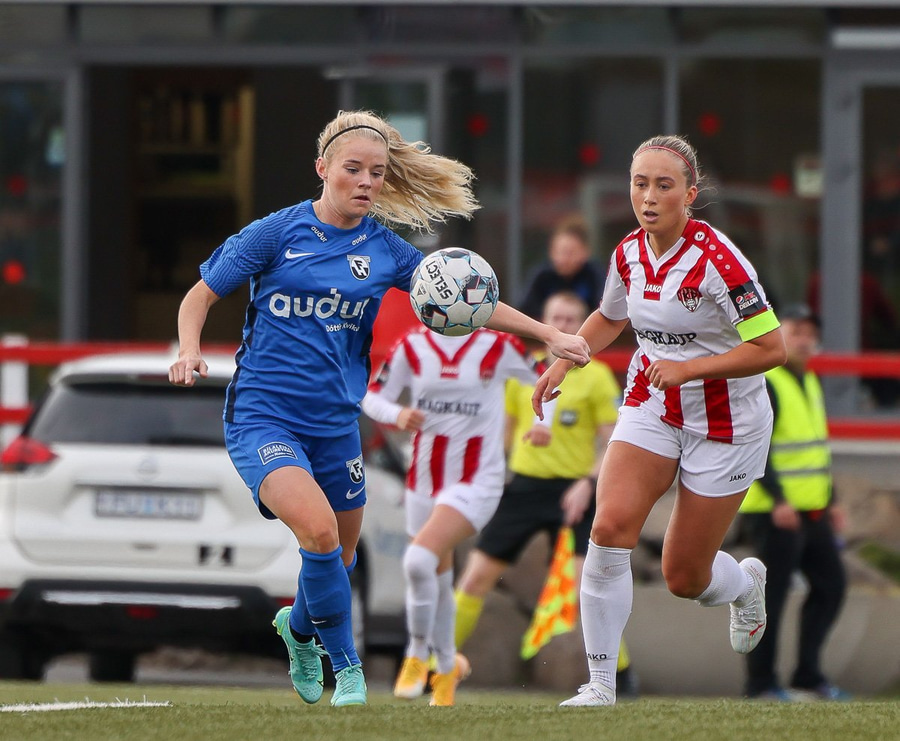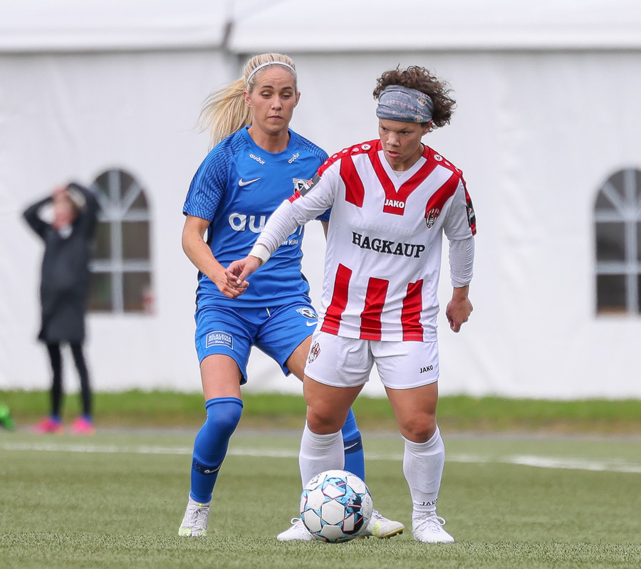 Rannveigu er fyrirmunað að skora. Setur boltann hér rétt fram hjá úr þröngu færi.