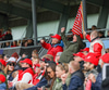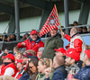 Áfram FH, áfram FH - heyrist úr stúkunni. Það er greinilega vel mætt úr Hafnarfirðinum.