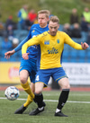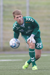 Lúkas reynir að chippa boltanum inn fyrir á Bakare en sendingin aðeins of löng og Jón tekur hann.