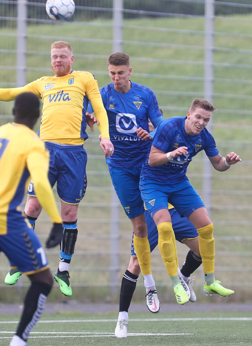 Flott sókn hjá Fjölni. Bakare fer framhjá Kára Daníel á hægri kantinum og á sendingu inní en Gussi skallar í innkast á fjærstönginni.