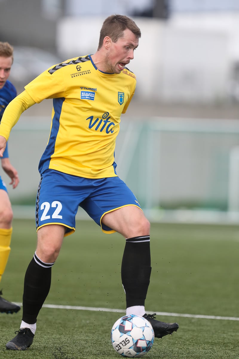 3 skot frá Andra Frey en Jón ver þau öll og bjargar Gróttunni alveg.