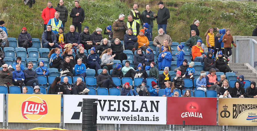 Vindurinn að hafa mikil áhrif á spil liðanna, boltinn fýkur oft útaf í háu boltunum.