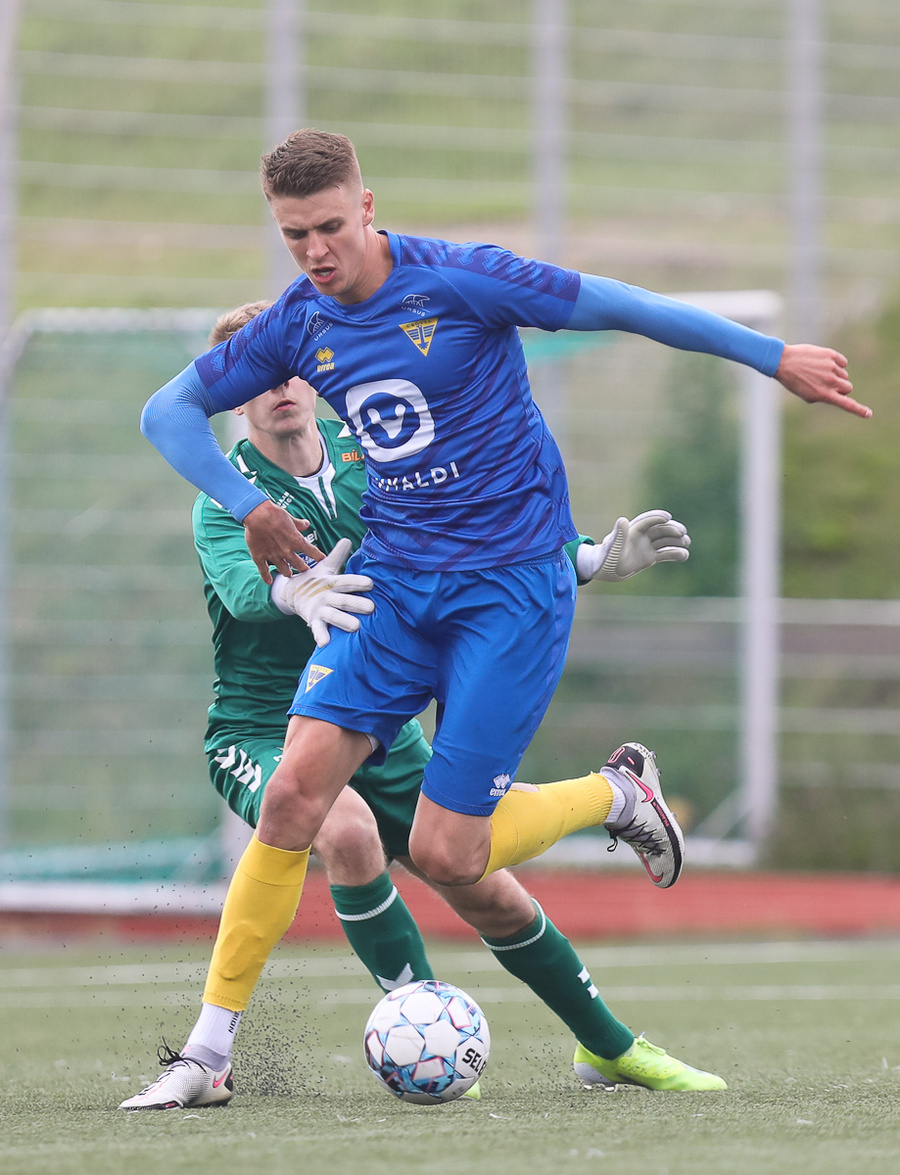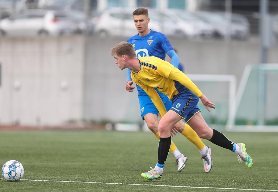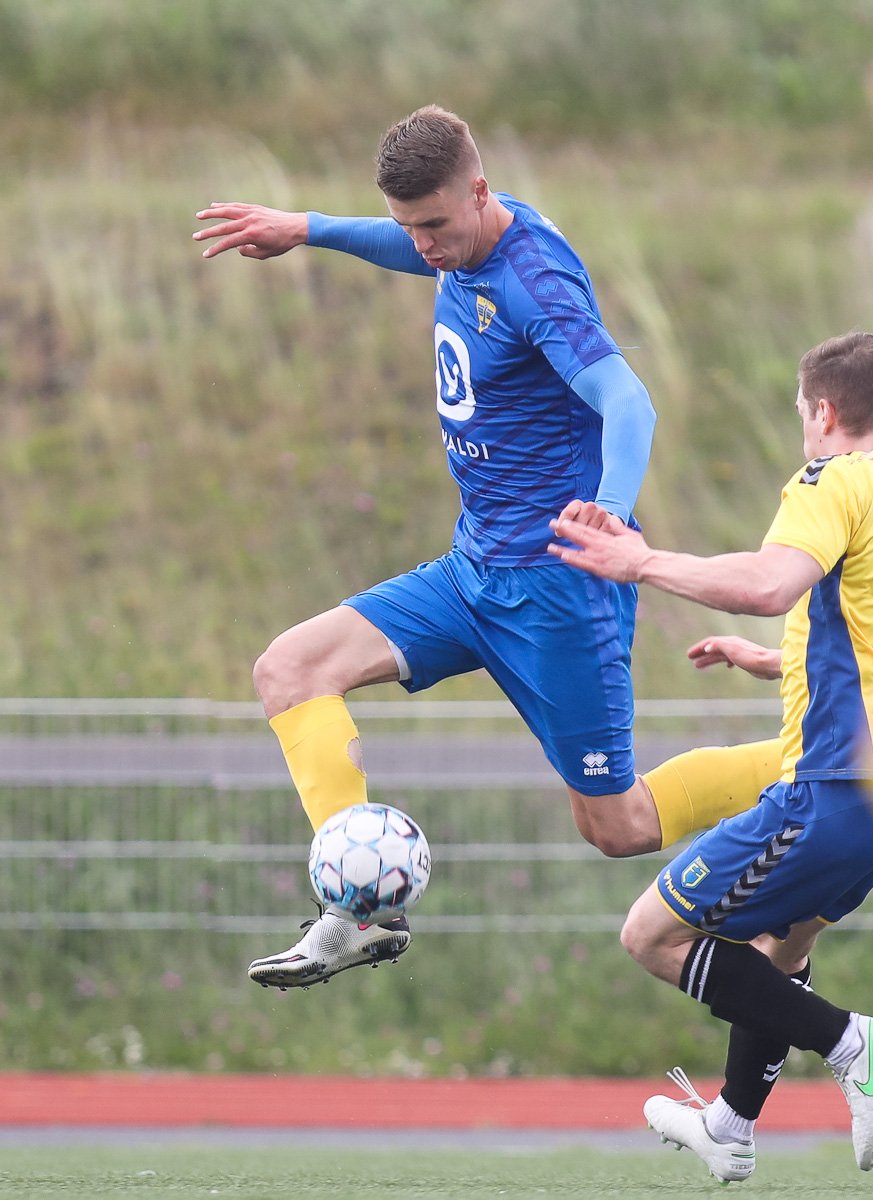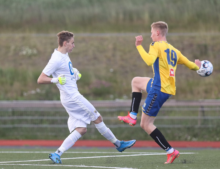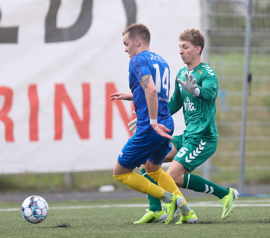Bakare fær boltann á miðjunni og klobbar Júlí og tekur af stað, er með Hilmi í hjálp og notar hann. Hilmir reynir að senda niður á Andra sem kemur í þriðja hlaupið en Patrik setur boltann í horn.