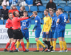 Smá hiti hjá varamannabekk Fjölnis eftir að dómarinn dæmir brot á Andra Frey. Einhver orðaskipti á milli Kára Daníels og Ása Arnarss.