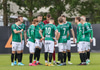 Á sama tíma mæta liðin inn á völlinn...þetta er rétt að detta í gang!