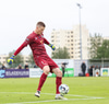KR fara meira upp vinstra megin, nú kemur sending á fjær þar sem Kjartan Henry þarf að teygja sig til að ná skalla sem fer hátt yfir.