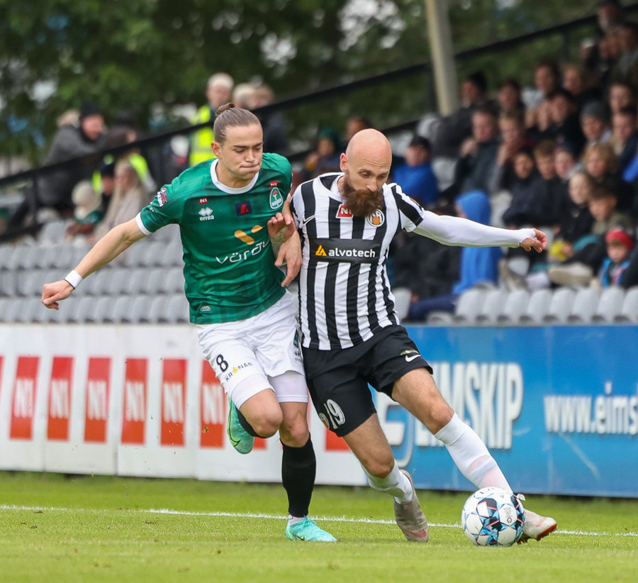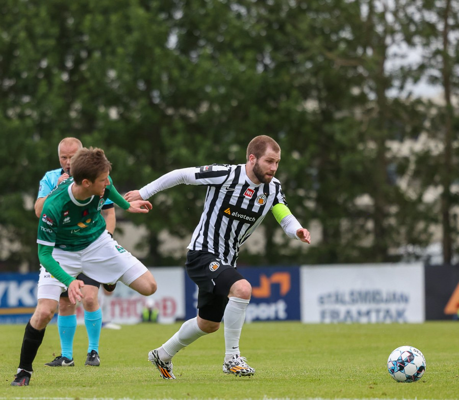 Kjartan Henry í erfiðu færi, nær hælspyrnu að marki eftir sendingu frá Kristjáni en rétt framhjá á nær.